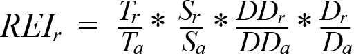 where r is an individual receiver and a is the whole array, T = number of tag IDs in the study, S = number of species, DD = detection days, and D = number of days a specific receiver was deployed within the array. Given that halibut are the only species of interest for the study and that all receivers have the same deployment period, both Sr/Sa (the proportion of species in the array detected at each receiver) and Dr/Da were set to 1.